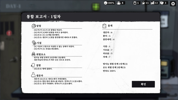 你必须控制幸存者的体力和心理,并提供生存所需的食物、日用品和医疗用品。