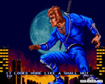 1990年,alpha公司又出新产品,本作的操作性肯定是没得说的,游戏难 度挺高,新手没几分钟就得死翘翘。 杀了前几关的boss后,可以选择他 们来战斗,不过我还是喜欢选忍者,用起来顺手些。 alpha公司的画功实不怎么样,从前部作品到本作,人物都是硬梆梆的,除了两只脚会动外,身体其他部分是保持不动的,但这并不妨碍他们制作游戏的好玩性。