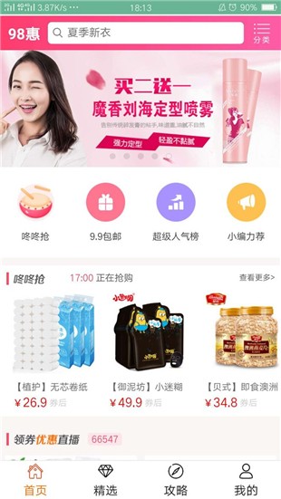98惠app,你的省钱购物神器。通过98惠app你每天都能领取淘宝、天猫的优惠券,快速获取物美价廉的实惠商品,享受更便民的购物服务。