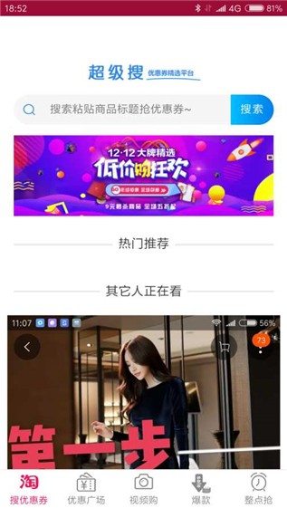 搜淘券是一款专门搜索淘宝天猫优惠券信息的APP,是汇集了淘宝天猫上百万信誉商家折扣、内部券的领券购物折扣返利平台。在淘淘券领内部购物优惠券后再购物,淘宝下单立省90%以上!以专业的优惠卷推荐模式,每日精选海量超值淘宝商家内部优惠卷给用户。真正的优惠券大全,几十万优惠卷一网打尽。每日定时更新优惠券信息。价格比聚划算、淘抢购更优惠!打折购物,这里有券!9块9包邮,这里有券!0元抢购,这里每天都有券!价格低到会笑醒,领券领到手抽筋,真正白菜价优惠券。