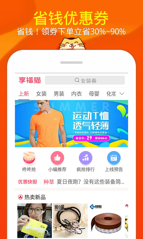 享福猫优惠券app是一款网络购物应用,在这里你可以免费领取淘宝天猫商城的网购优惠券!先领券后购物,这样更省钱!