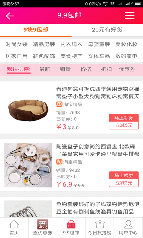 2、九块九包邮区,用卷后淘宝、天猫商品9块9包邮,媚态你几百款超级值;