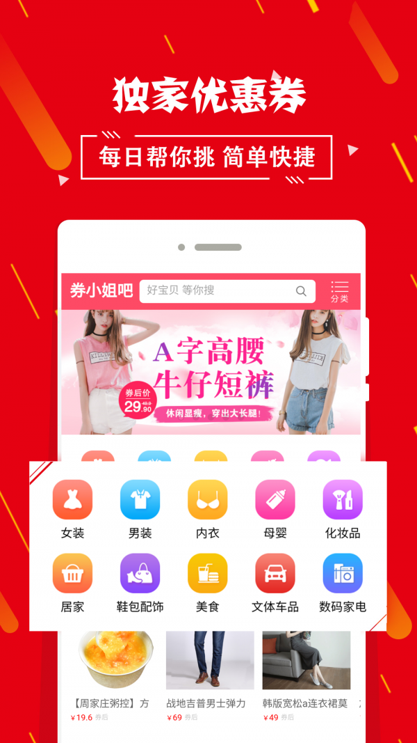 淘宝特价商品精选,千万购物达人的选择。券小姐吧是一款有品质的优惠券APP小程序,免费提供淘宝、天猫商家内部优惠券、隐藏优惠券,数千万淘宝用户的选择!1500万的装机量,每天为200万用户节省¥1000万以上开支。App Store上线三天达到生活榜单前三。淘宝官方合作伙伴,可信懒。