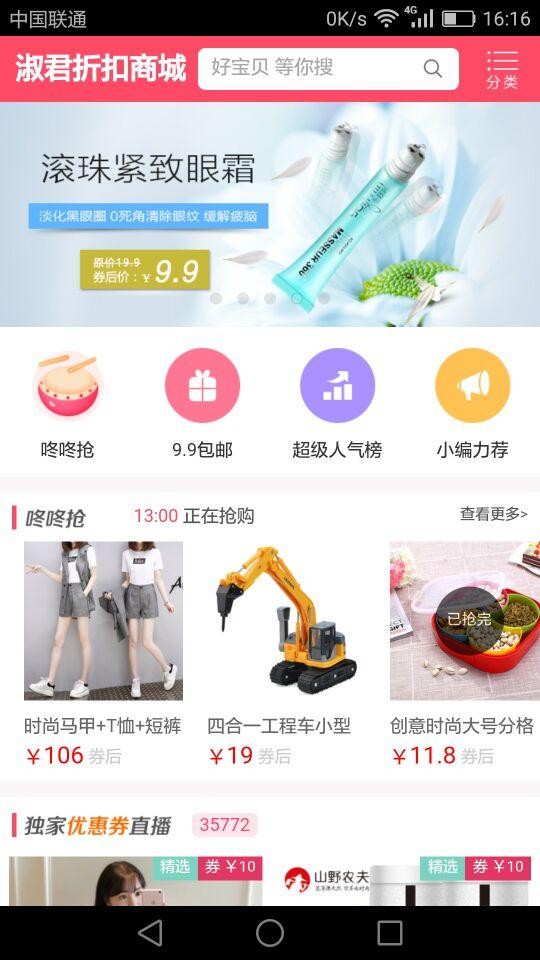 淑君折扣商城APP及网站专注淘宝优惠券商品,手工筛选,每天千款优惠券秒杀,一折限时疯抢!涵盖女装、化妆品、鞋包、数码、家居、等各种品质产品,更有9.9超低价包邮哦。