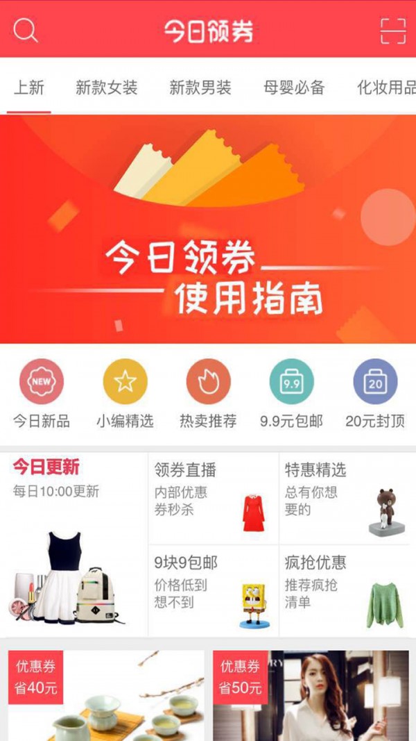 今日领券网app是一款领券购物可以享受优惠的app,下载优惠券app可以享受天猫淘宝5折特惠,史无前例的优惠价,购物前使用优惠券就可以享受了哦,APP用户专享,欢迎下载体验。