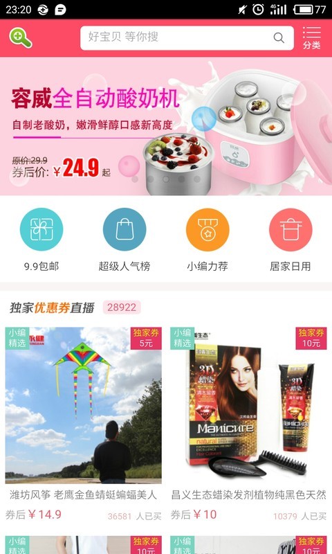 天猫.淘宝.白菜价商品线报,汇集内部优惠券,最全、力度。提供超值特价活动信息,9快9包邮,每天更新千款,纯人工筛选验货,限时限量特卖,让您购物更省钱 跟淘宝达人推荐是差不多一个意思,只不过他们提供的产品是原价的,我们跟各大品牌有内部合作,你平常买的产品都有大额内部优惠券!