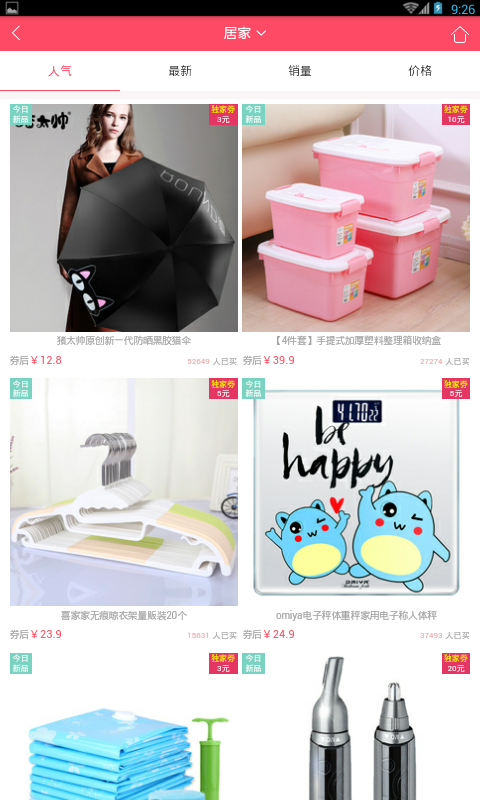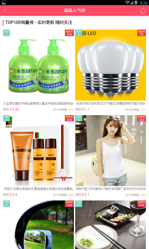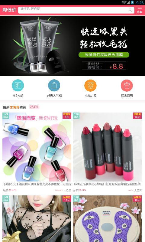 淘低价每天更新内部大额度优惠券,代金券,让你难以想象到的折扣力度,购得心意商品。打开软件直接左上角搜索关键词,如“羽绒服”点击搜 索,即可搜出大量对应商品的优惠券,软件内还有9.9包邮,超级人气榜,优品特卖等栏目,让你不错过每一款实惠的产品,折扣力度之大让您想不 到,所有商品纯人工筛选验货,全场包邮,天天还有免单商品哦!