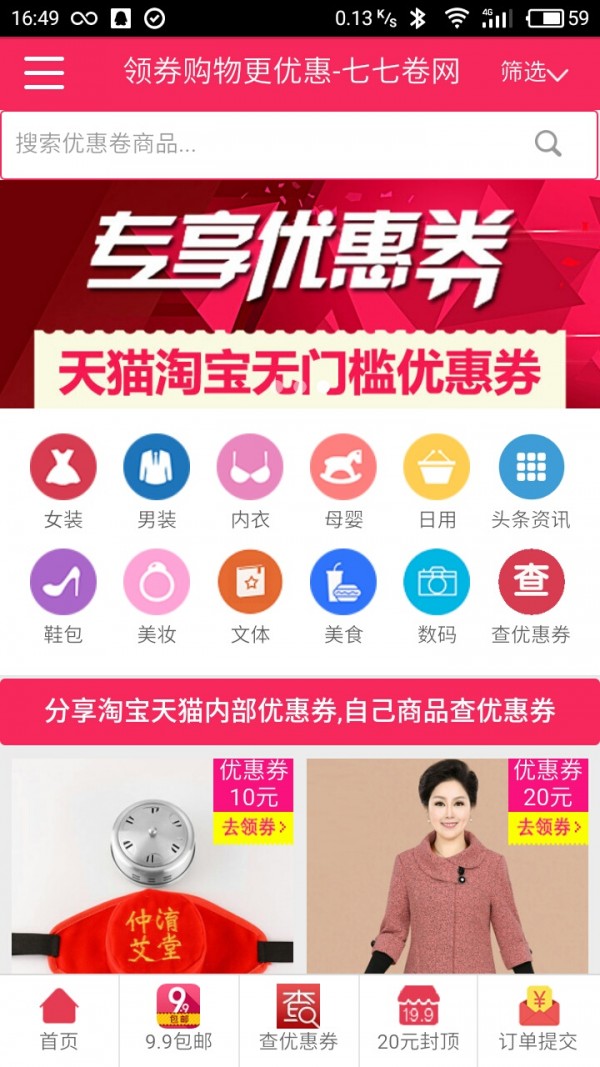 七七卷网app是一款网络购物应用,七七卷网app为用户精选大量购物优惠券信息,方便用户轻松领券,享受超省钱的购物服务。