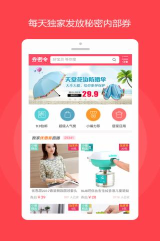 券密令优惠券app是一款网络购物应用,券密令优惠券app为用户提供大量购物优惠券,让用户可以体验超省钱的网络购物服务。