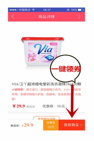 从此告别Q群领券繁琐的流程。 一键安装,一键领券,一键购物。 直接跳转天猫淘宝购物,安全有保障。 淘淘优惠券:天猫淘宝内部优惠券,1-5折品牌优惠券。领券购买天猫、淘宝等商品,省50-90%以上,超值低价,便宜到家。