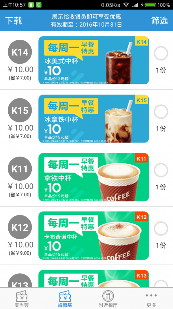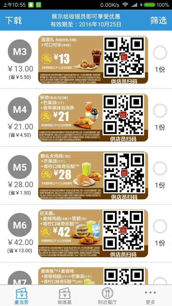 App内优惠券信息,均来自中国大陆地区肯德基和麦当劳官方网站。