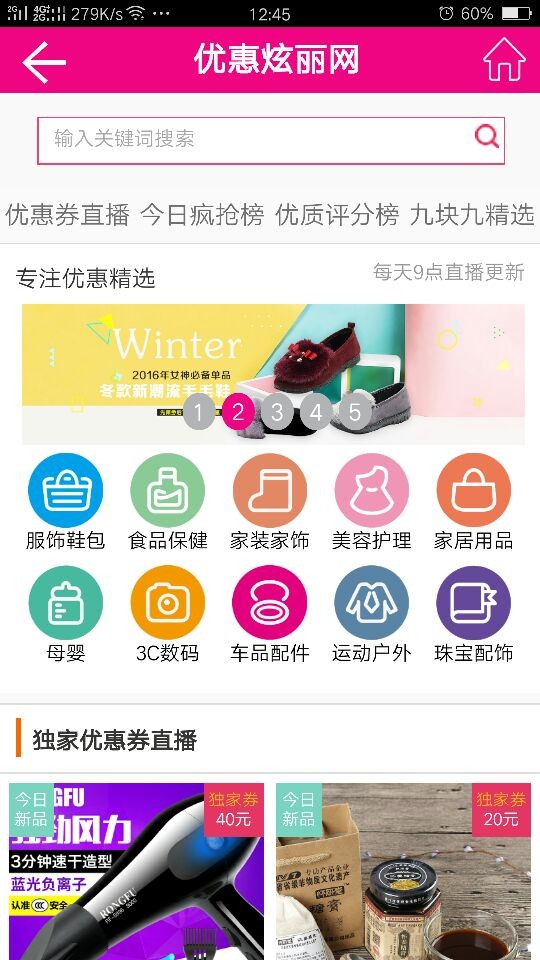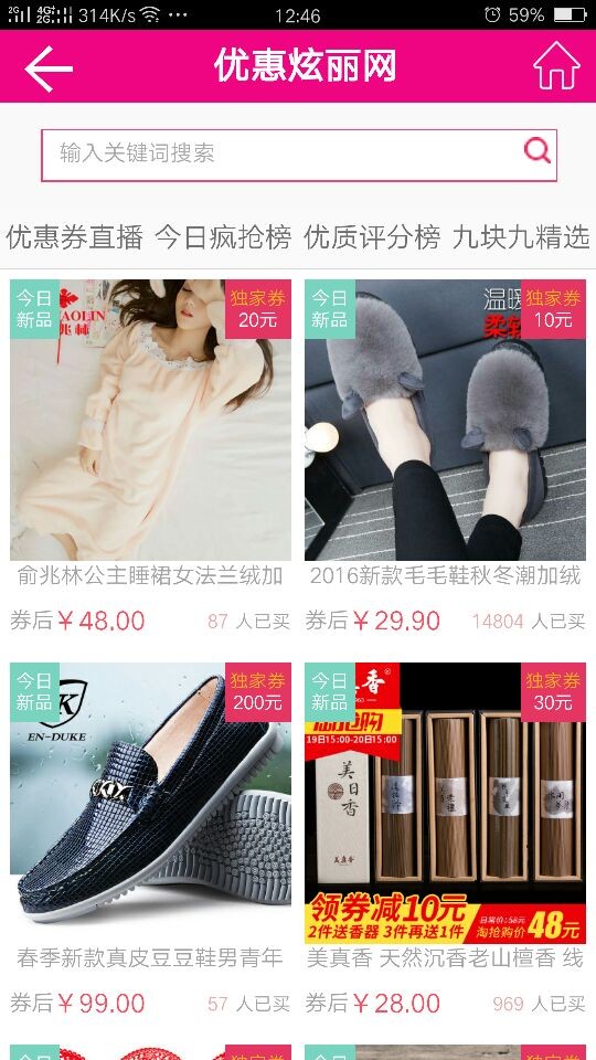 本APP只提供优惠券链接,不提供直接购买,点击领取优惠券后会一键跳转到淘宝天猫商家店铺的客户端,并不是在折扣惠淘APP上购买商品,使用APP过程中尽量和其他的购物APP配合使用,本APP每天都会更新上千种优惠商品,让你省省省,记得随时关注哦。