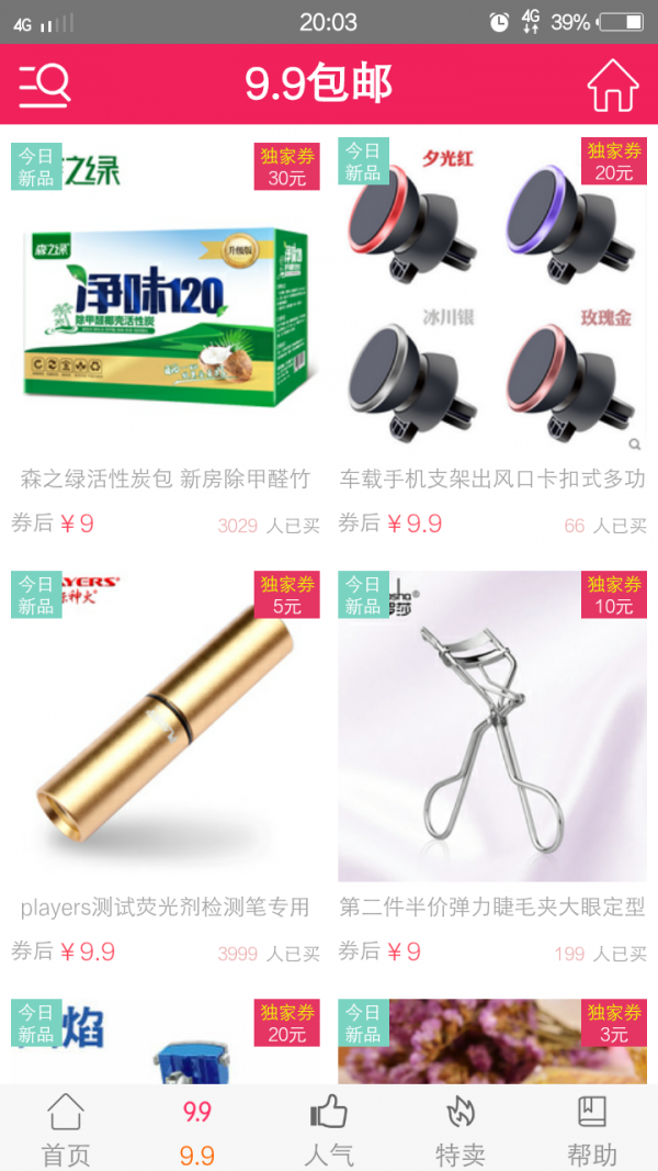 9.9栏目:券后价9.9元以内的小而美精品汇。