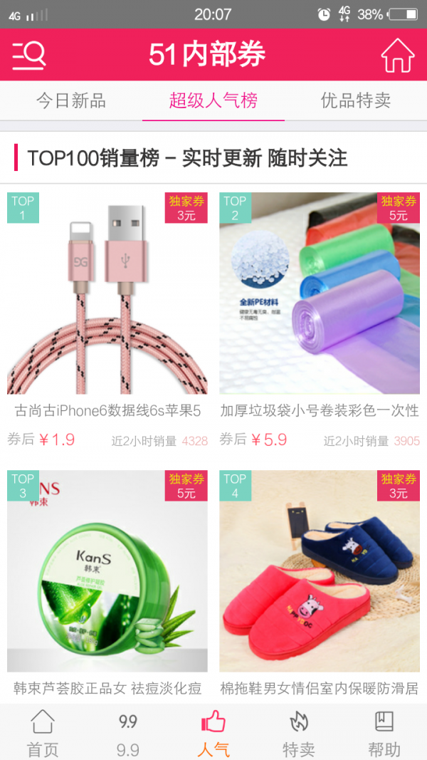 人气栏目:实时更新的最受欢迎的商品销量榜单。