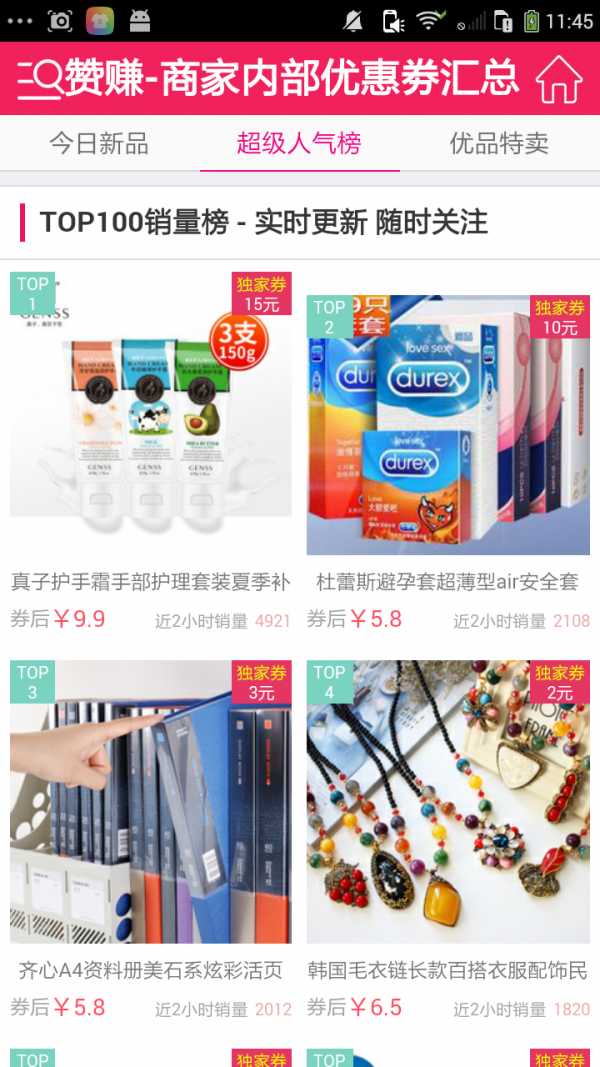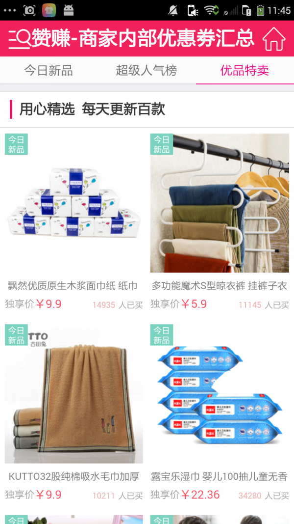 汇集了天猫淘宝商家的内部优惠劵,不对外公开,每天更新上万款,囊括各大类目,先领劵再下单。绝对的超值,居家必备的一款应用软件!