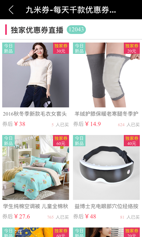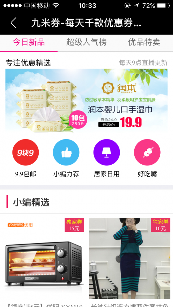 【今日新品】:九米券达人为你收集平台的优惠券信息,为您挑选白菜商品,还有一大堆神价格等着你来抢。