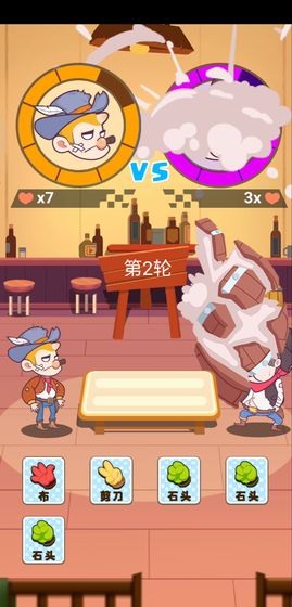 出剪刀胜利,可使用洋酒瓶,扣除对方2点生命值;