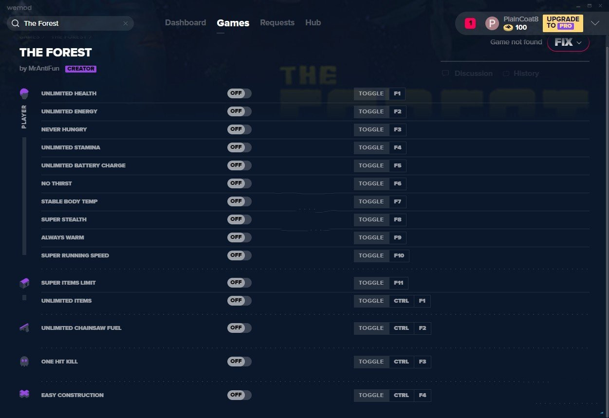 The Forest修改器是“森林游戏”的最新免费修改器,通过这款修改器玩家可以在游戏中获得无限生命、无限资源,不会感到饥饿,让你轻松在森林中生存。
