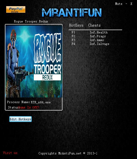 2、复制“Rogue Trooper Redux V11.09.2017 Trainer +4 MrAntiFun.EXE”,粘贴在游戏目录下