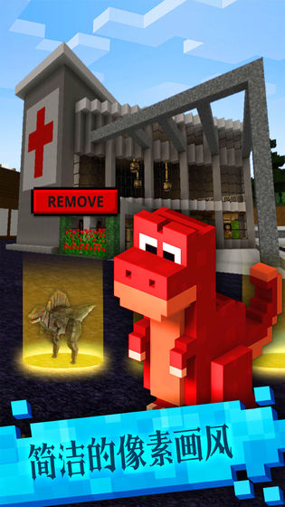 游戏中,你可以用积木在世界内打造、创造和制作黄金霸王龙、风神翼龙及始祖鸟等等上古生物!在这个精简的袖珍矿块状游戏里,让你手把手建造属于自己的恐龙世界!探索和挖掘一切可能性!利用无限的资源来构建任何你想要的东西!