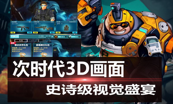 本作是采用3D引擎打造的一款全3D FPS游戏。利用引擎性能打造的卡通渲染的游戏场景,给人一种美国超级英雄漫画的感受。闯关模式、无尽模式,再现真实战场!炫酷的武器道具,强大的火力,更有极具魄力的BOSS,带给玩家超强度的爽快感。