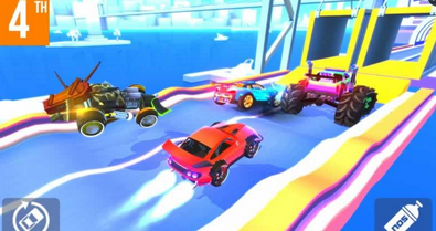 玩家要做的就是控制赛车及时变换赛道来获取各种加速道具或躲避其它车辆,游戏画风新奇并且收集元素众多,玩家可以用金币购买各种车辆并自行设计赛道。