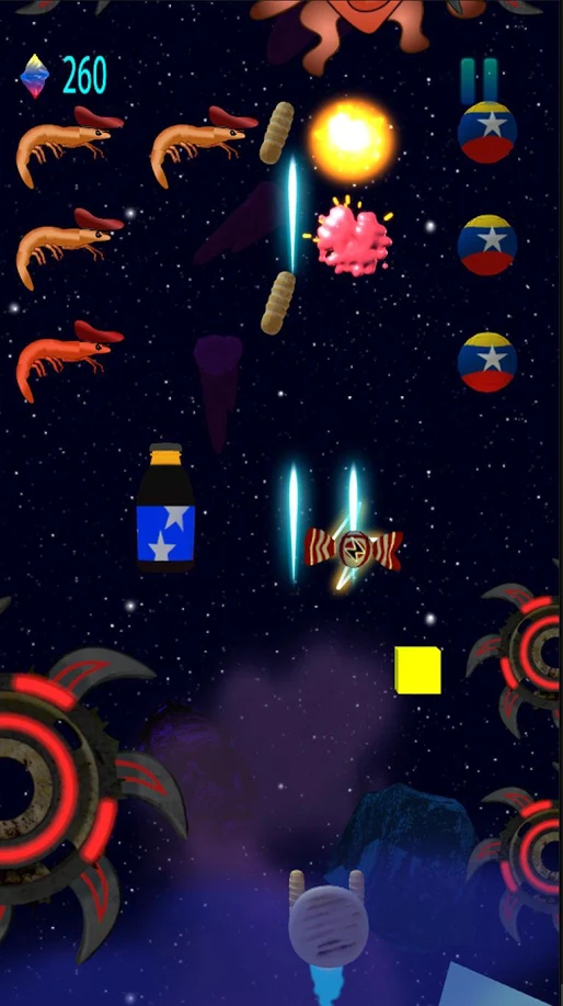 太空玉米饼中文版是一款以射击玩法为主的太空生存类飞行射击游戏,游戏采用了非常经典的雷电式竖屏射击模式,玩家只需要简简单单的一只手就可以完成操作了,在游戏中你只要消灭了 敌人就可以获得不同的战利品哦。游戏画面非常的简洁,各种击打特效却又做得非常的酷炫,这也就使得游戏非常具有冲击感,玩起来非常的刺激。游戏的难度整体上来说还是有一定的,蜂拥而至的敌人需要你击落,满屏的子弹需要你躲避。