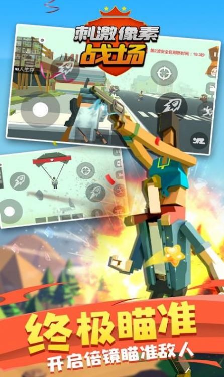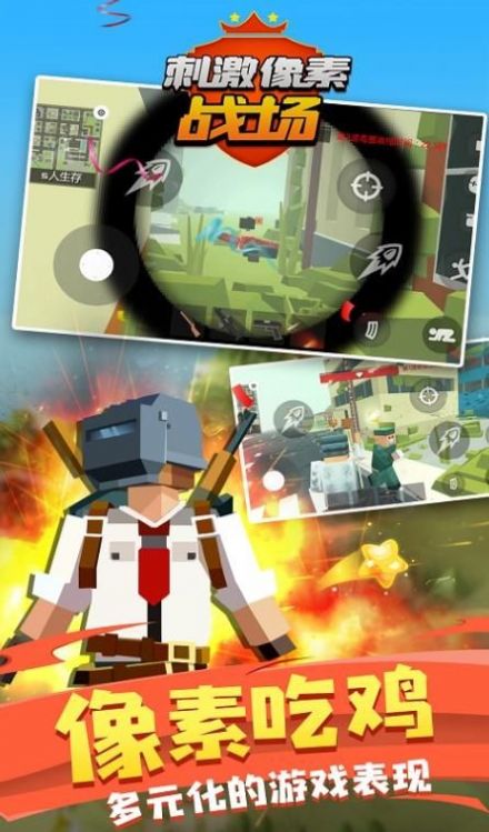 1、这款游戏里使用像素的风格,玩家们可以来到这款简单的吃鸡游戏战场里进行冒险。