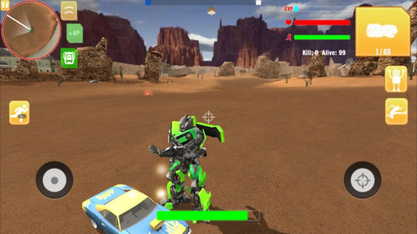 游戏中,玩家选择一款机器人操控。在这个弱肉强食的世界,玩家需要用自己的实力击杀敌人,抢夺装备和物资才能生存下去。机器人自由开火以3D建模,最大程度的还原了真实世界,同时,游戏为每一位英雄配备了血量系统,玩家需要注意时刻保持自己的血量不被消耗殆尽。这款游戏中,玩家可以与其他玩家自由匹配也可以和好友一起游戏。喜欢的玩家快来下载吧!