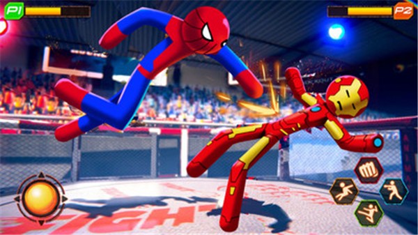 蜘蛛侠钢铁侠蝙蝠侠,是的,没错,在这款游戏中,你可以见证火柴人形象的上述三者。玩家在游戏中将会身处一个擂台之上,在擂台上你可以选择自己喜欢的游戏形象角色完成属于自己的游戏方式。在游戏中,还有着大量的战斗场面,十分刺激和有趣。玩家将配合着游戏中的背景音乐,享受一场独一无二的战斗。游戏十分燃和热血,不信你就来试试吧,相信你会爱上这款游戏的。
