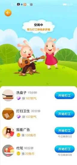 5、进行趣味性每日任务、打工赚钱、及其多种多样的主题活动得到大量奖赏,与超萌小兔共同成长。