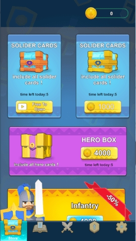 1、经典塔防战斗模式,点兵点将按照计划部署,战争开始无需操作,看士兵挂机作战。