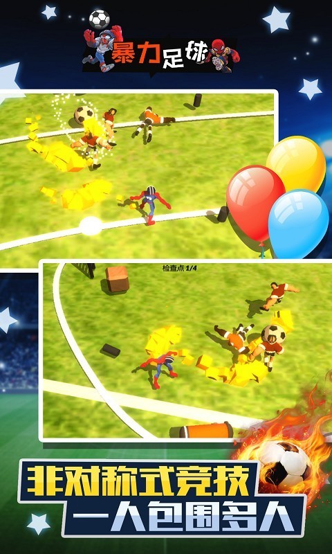 暴力足球中文汉化版是一款游戏玩法新奇、一人对决多的人的非对称加密式足球竞技手机游戏。游戏玩家游戏中饰演一名英雄人物足球运动员,在多的人对手的阻挠下,不断阻拦断球,根据一个个查验副本,最后射球获得胜利。游戏选用与众不同的实际操作方法,游戏玩家必须每时每刻把控好人物角色的正确方向,并避开前去阻拦的对手。自然,你不用担心球被夺走,由于不断铲飞对手来偷球才算是这款手机游戏的关键游戏玩法。一人包围着多的人,以超级冲峰的姿势,击败敌人,射门得分!全新升级的游戏玩法,高质量游戏画面,与众不同的角色情景主要表现,给你产生与众不同的足球赛事感受。