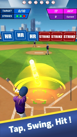 2、准备好,在这场终极棒球比赛中轻松挥杆并击中棒球,你会获得分数;