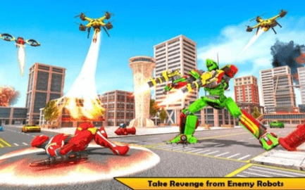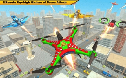 无人机机器人游戏和机器人战争游戏结合了许多机器人变换功能,例如火焰喷射和硝基加速汽车驾驶。