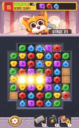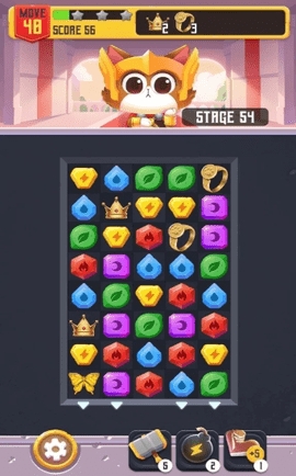 珠宝雷霆猫是一款轻松有趣玩法休闲的消消乐手游,游戏由经典的三消玩法打造,画面场景卡通激萌,将三个相同图案的珠宝链接在一起就能消除掉,一次性消除的珠宝越多获得的分数就越高