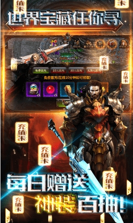 2、登陆即可在背包领取总价值超过1000RMB的充值卡!使用后获得海量钻石!全场的消费你都可以一人买单!