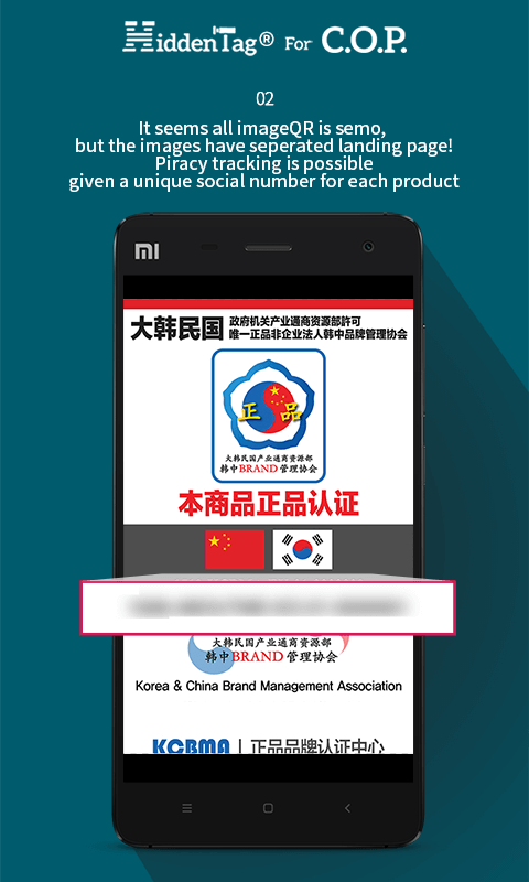 This is a scan mobile APPlication to detect Authenticity certification.If user executes the app, user shall be positioned a mobile on QR or Authenticity Code.Then the app can be see to user that the result detected to QR or Authenticity Code.Maybe, have any questions :web site : http://www.hiddentag.com, http://www.cknb.co.krphone : 82-02-453-8416e-mAIl : hiddentag@cknb.co.krany time contact us.thank you!