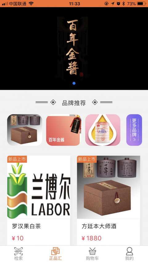 消费者在线下购买商品时,扫商品码,验证商品真伪,并可对正商品进行支付的实用工具,同时APP自带正品汇商城,供消费者在线选购品牌商品。