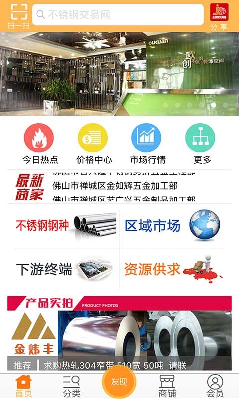 不锈钢交易网客户端是基于移动互联网平台而研发的手机客户端,在此平台上,能及时地与客户互动交流,合作会员还可以通过供求商机来展示自己的特色产品,拓展移动营销渠道,随时随地把握移动互联网商机。真实、高效地让您生活更简单!提供各种不锈钢交易网的便捷浏览方式