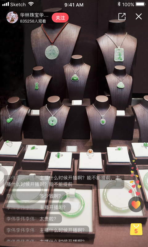4、实力商家在线直播,颠覆了传统电商购物模式,您可以随时与商家互动,选择心怡的珠宝。