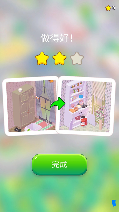 13、每次完成关卡后都可以得到相应的星星奖励,然后获取设计方案,玩家需要不断完成任务帮助自己更好地装饰新家,以上就是装饰人生的游戏玩法了。