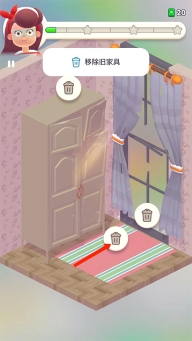这是一款完整还原装修流程的游戏。第一步,把未装修旧房间里的家具与物品,分类放进对应的盒子。接着,挑选家居设计方案,拆箱并摆放家具。最后,打开包装,在重新装修好的房间里布置新的装饰物件与财物。