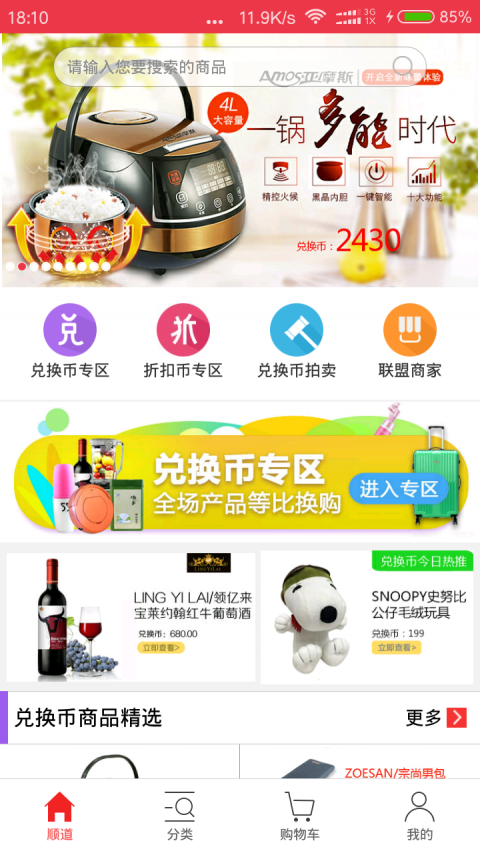 【品类丰富】上千款品牌优品,涵盖服饰、家居、母婴、家电、鞋包等10个品类,换您所需,低价换购您心仪之物。