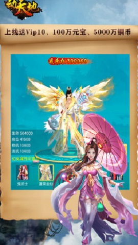 上线送满V,满V=VIP12,金币10000万,元宝10万元宝