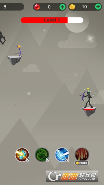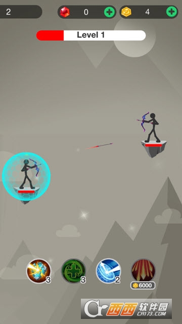 射击时要看准角度,注意射击技巧,基于物理原理的射箭游戏,获得一定数量的金币能解锁角色和武器