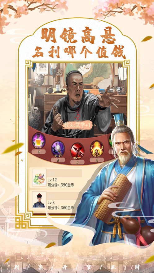 步步升官发财官方版是一款操作简单玩起来也是非常轻松是模拟当官游戏,这里的游戏画面非常的简单,你们一定要非常的公正,每天都会有很多的案件需要你们来判断,不要有任何的私心,当然也不可以做一个贪官哦。