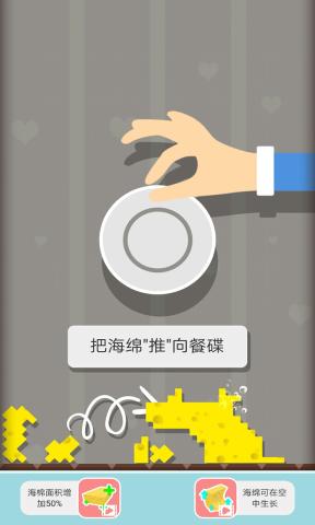 己得把海绵推向餐盘和杯碟,这样洗的快一些。