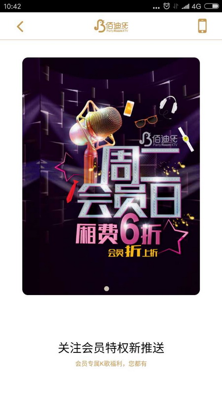 3、包厢预订:佰迪乐KTV全国连锁在线预订包厢,7X24小时提前七天预订包厢,避免到店等候;