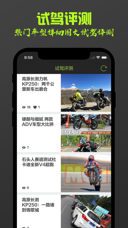 摩托客,你的掌上摩托车之家,焕新上架!欢迎来到属于骑士的世界,不管你是摩托大咖还是小白,在这里都会找到你需要的东西,为您提供全新车型资讯、评测、百科知识,让您轻松成为摩托专家,畅游摩托世界。主要特色:◆热点资讯,每日最新车型资讯抢先看◆试驾评测,热门车型详细图文试驾评测◆用车百科,实用摩托车百科&驾驶技巧◆精彩视频,收录时下流行摩托车视频还在犹豫什么,快来下载体验吧!